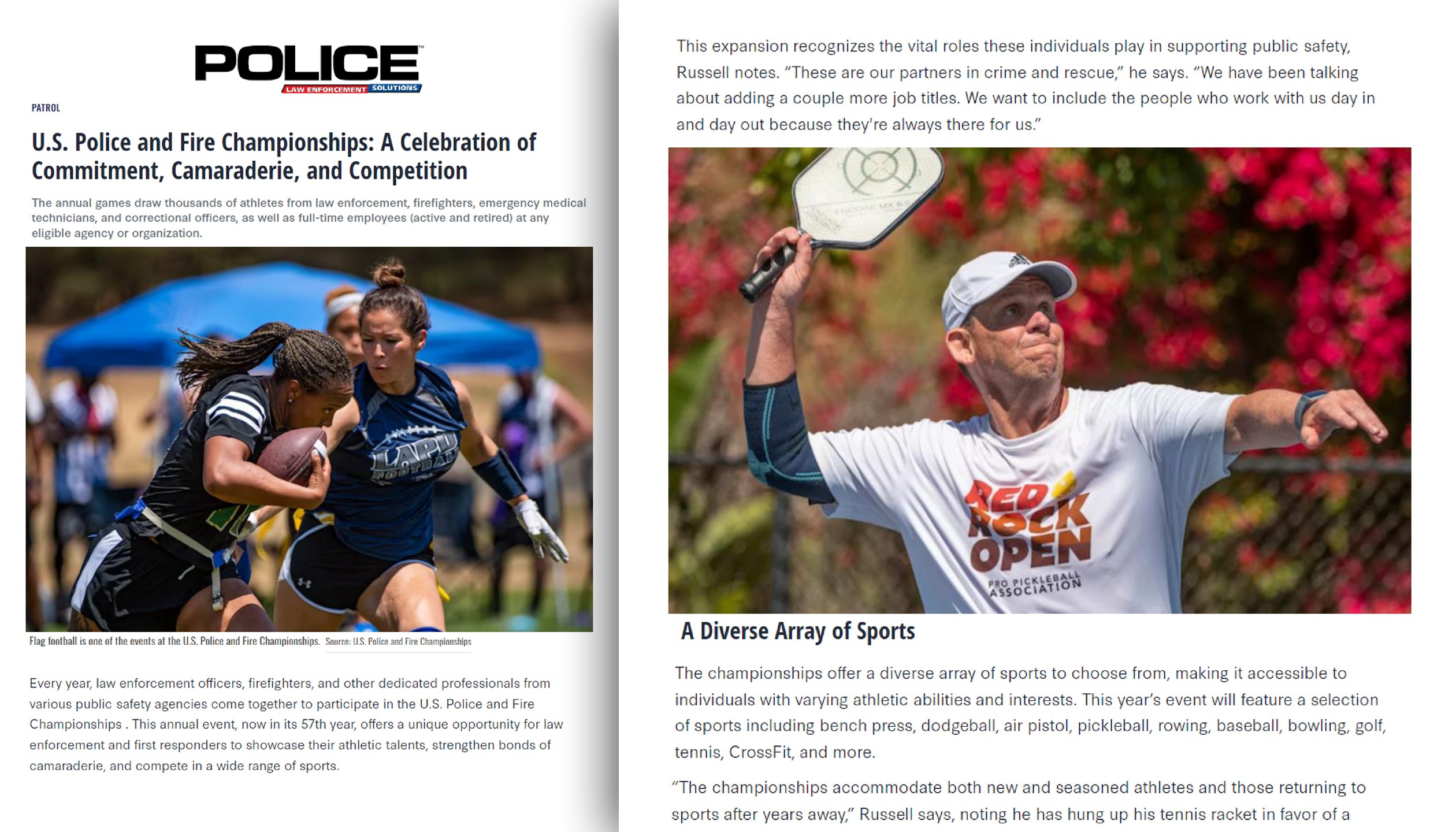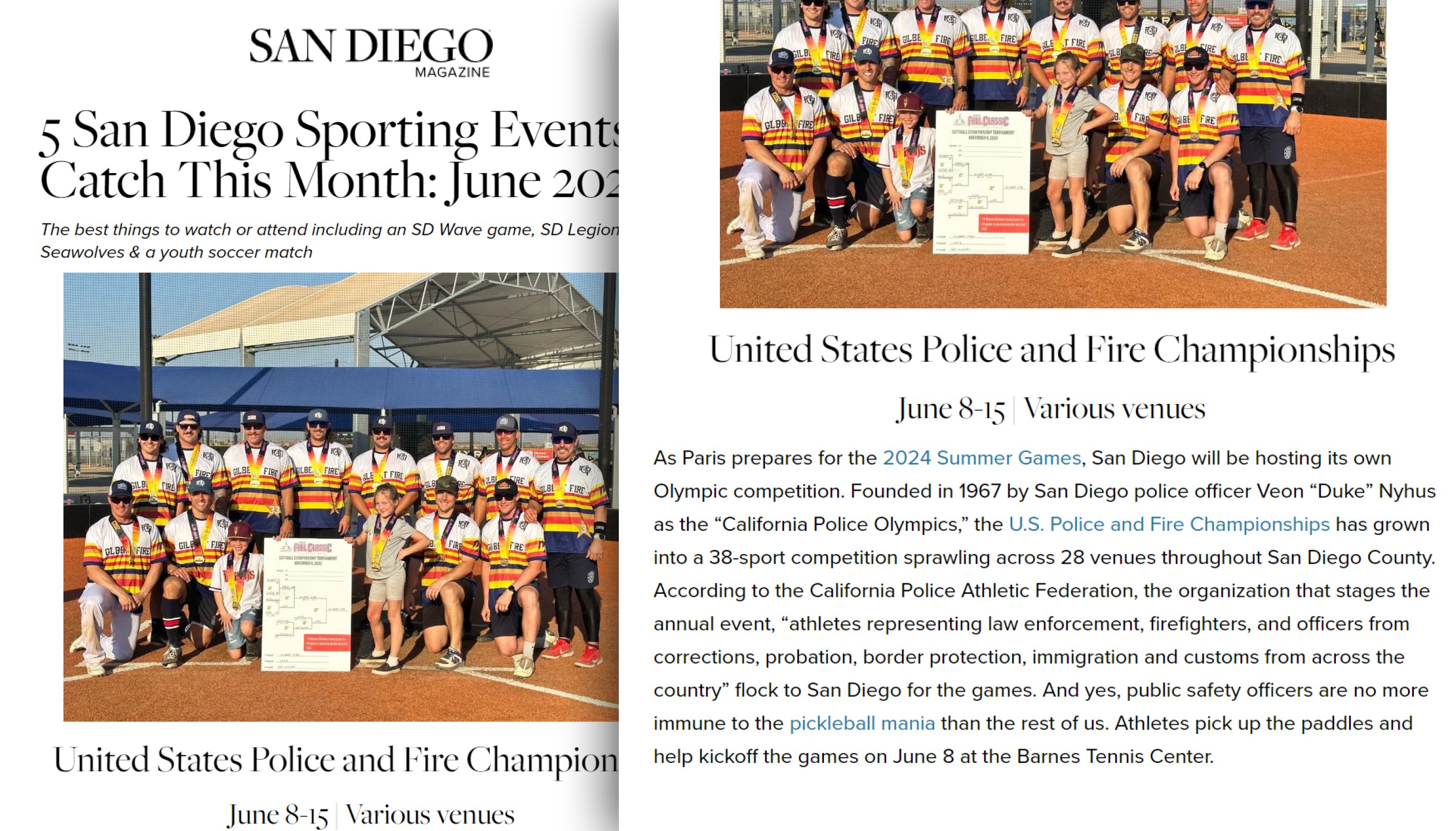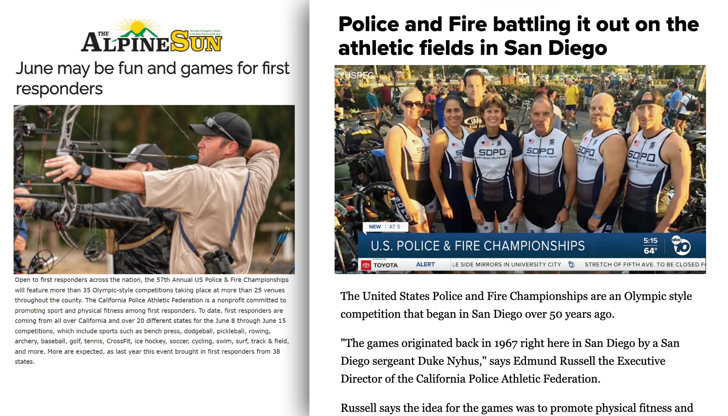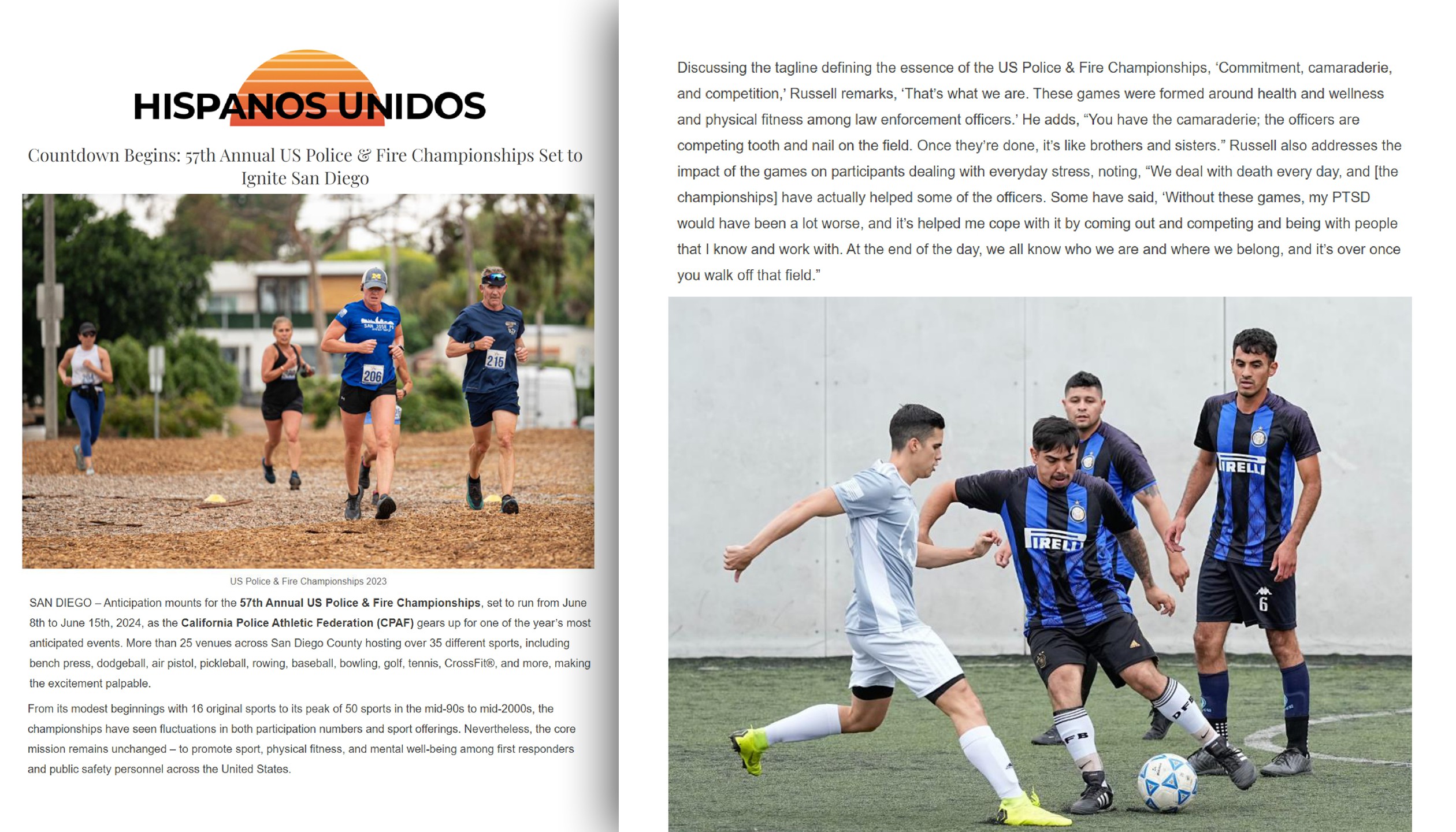 Through the years since we began in 202, the USPFC have been featured in over 400 media hits internationally, nationally and regionally. The USPFC have been featured in national trade outlets like International Firefighter, Police1, Firehouse Magazine, Officer, The Fireman’s Grapevine, Sports Destination Management, EMS1, Fire Engineering, Fire Rescue1 and more.